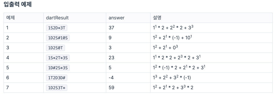 갓 입사한 무지는 코딩 실력을 인정받아 게임의 핵심 부분인 점수 계산 로직을 맡게 되었다. 다트 게임의 점수 계산 로직은 아래와 같다.