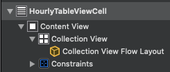 class HourlyTableViewCell: UITableViewCell { static let registerID: String = "\(HourlyTableViewCell.self)" collectionView.register(UINib(nibName: "HourlyTableCollectionViewCell", bundle: nil), forCellWithReuseIdentifier: HourlyTableCollectionViewCell.registerID) }
