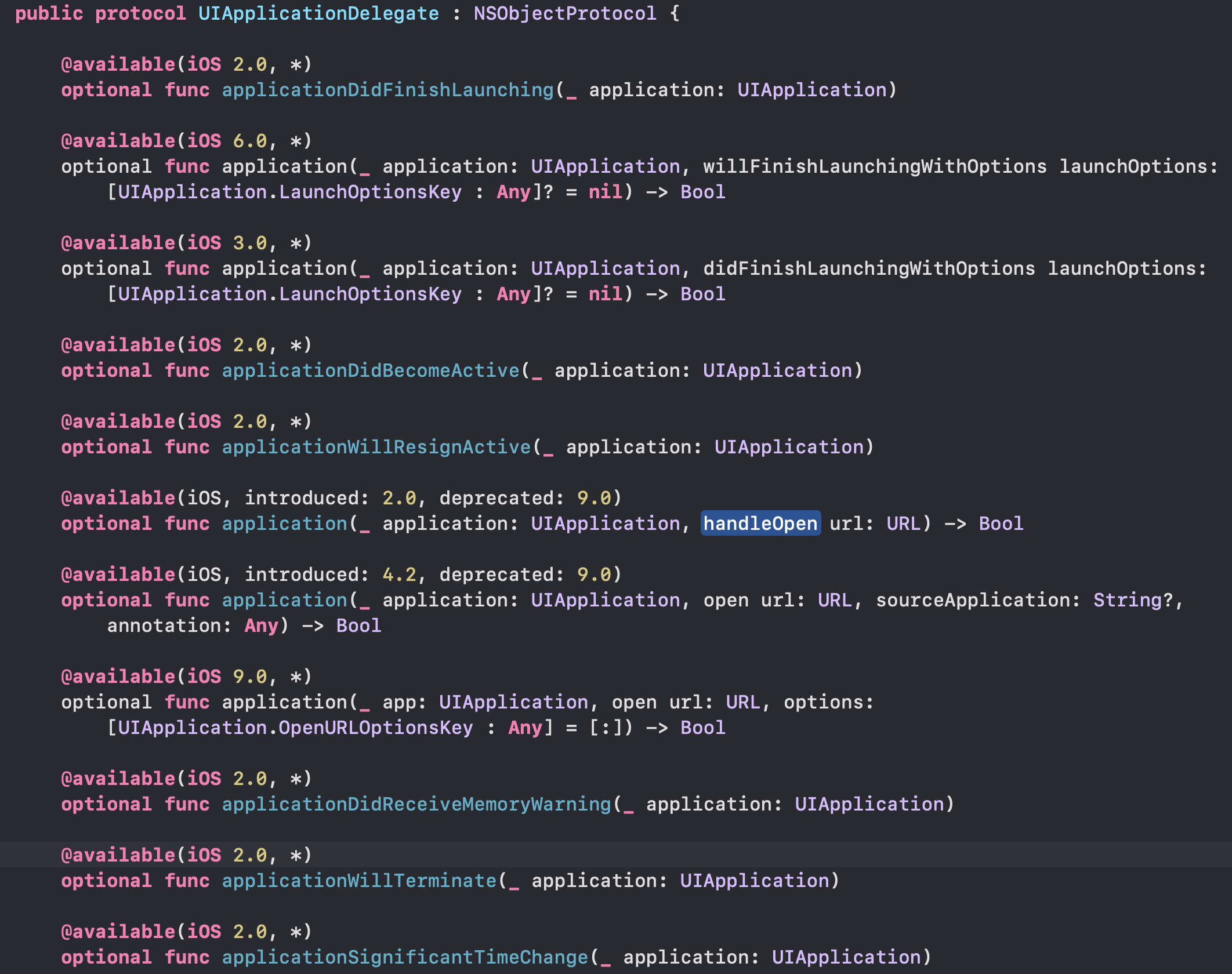 - 특정한 scenes, views, viewControllers에 한정되지 않고 앱 자체를 타겟하는 이벤트에 대응하는 것