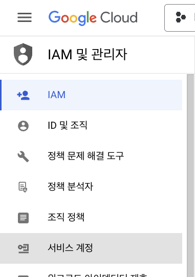 3. 왼쪽 상단에서 서비스 계정을 탭합니다