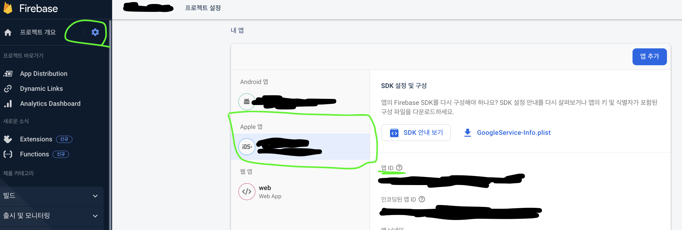 1. 녹색으로 표시된 부분 바로 아래에 나와있는 앱 ID 부분이 ID 입니다