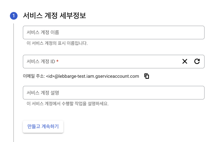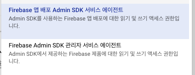 4. + 서비스계정 만들기 버튼을 탭합니다