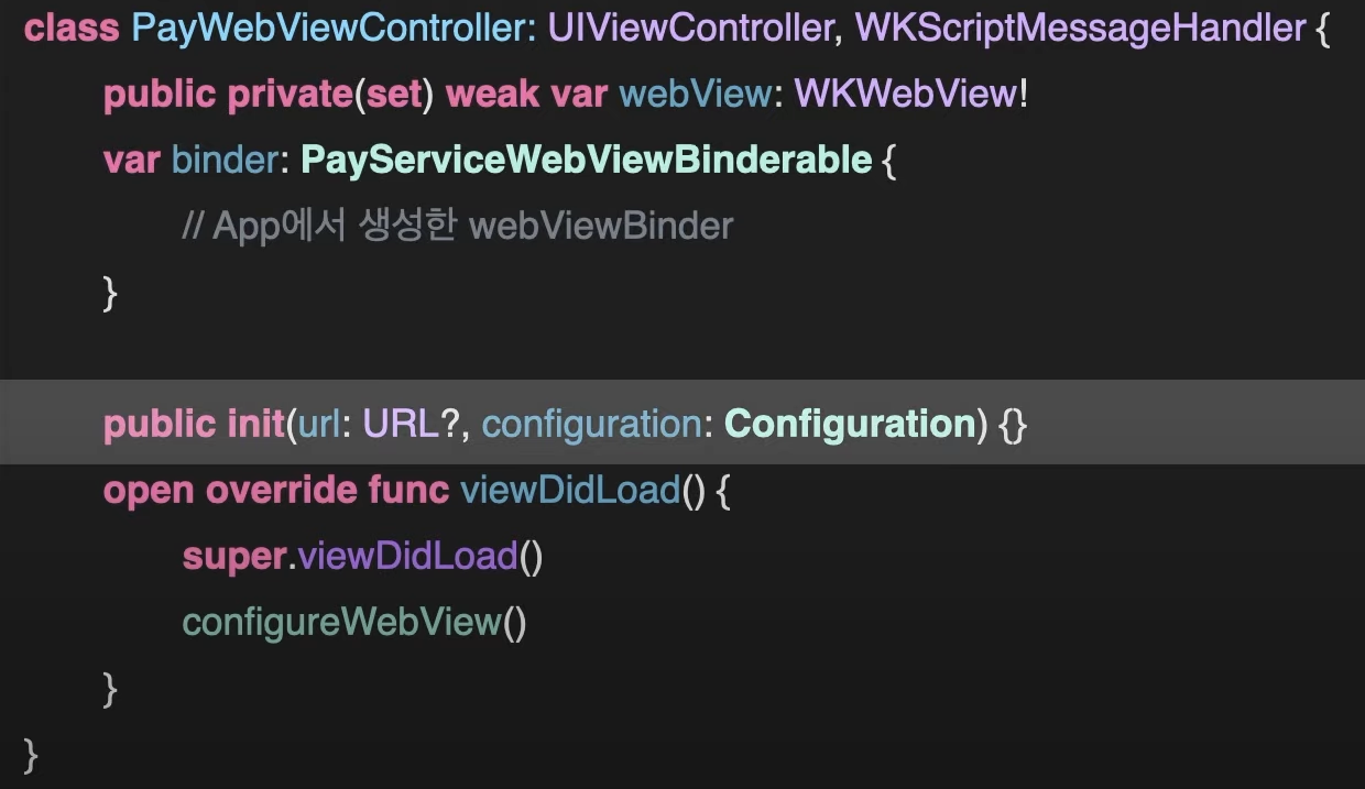 - 웹뷰 UI 설정 값을 Configuration으로 받아 WebViewController객체 생성