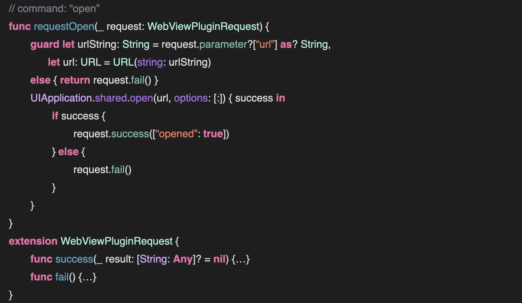 - 이 예시는 open이라는 commnad값을 받고 파라미터로 url을 받아 여는 함수입니다
