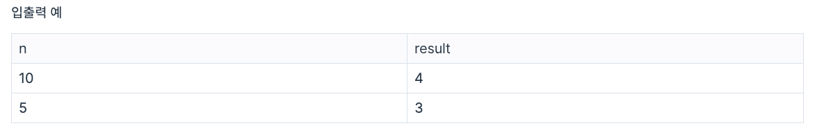 1부터 입력받은 숫자 n 사이에 있는 소수의 개수를 반환하는 함수, solution을 만들어 보세요.